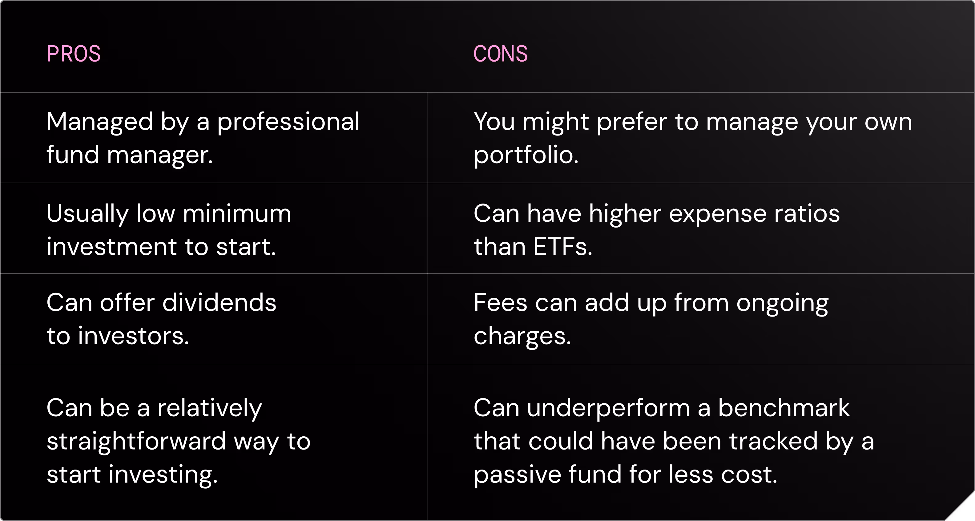 Fund managers aim to deliver returns by selecting assets they believe will perform well. Most mutual funds are actively managed, meaning the fund manager makes decisions to try and outperform the market. Others are passively managed, aiming to track the performance of a market index, and tend to be lower cost for investors.