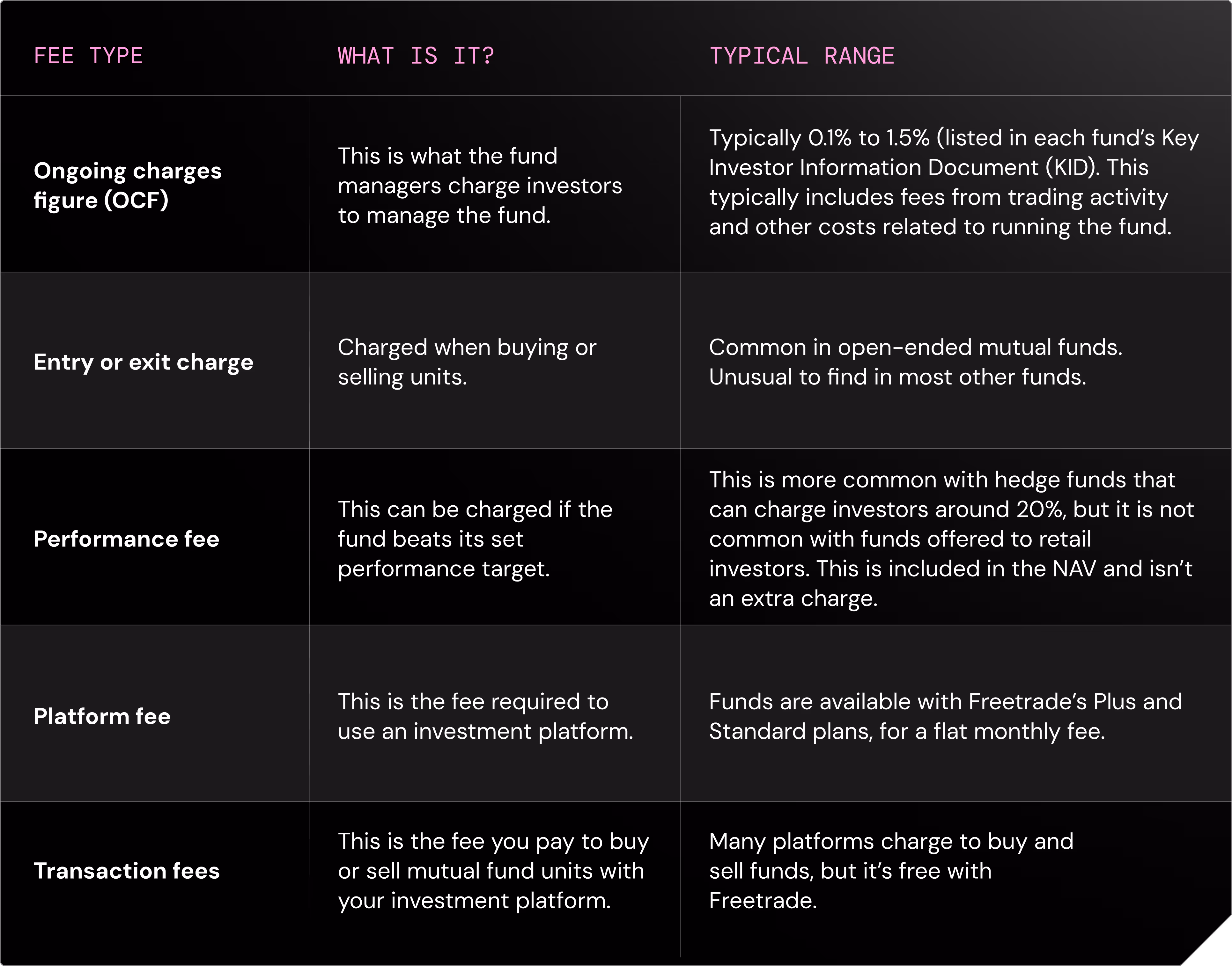 Mutual funds charge fees to cover the cost of managing the fund. These fees vary by fund type and provider, and they can impact your returns over time.