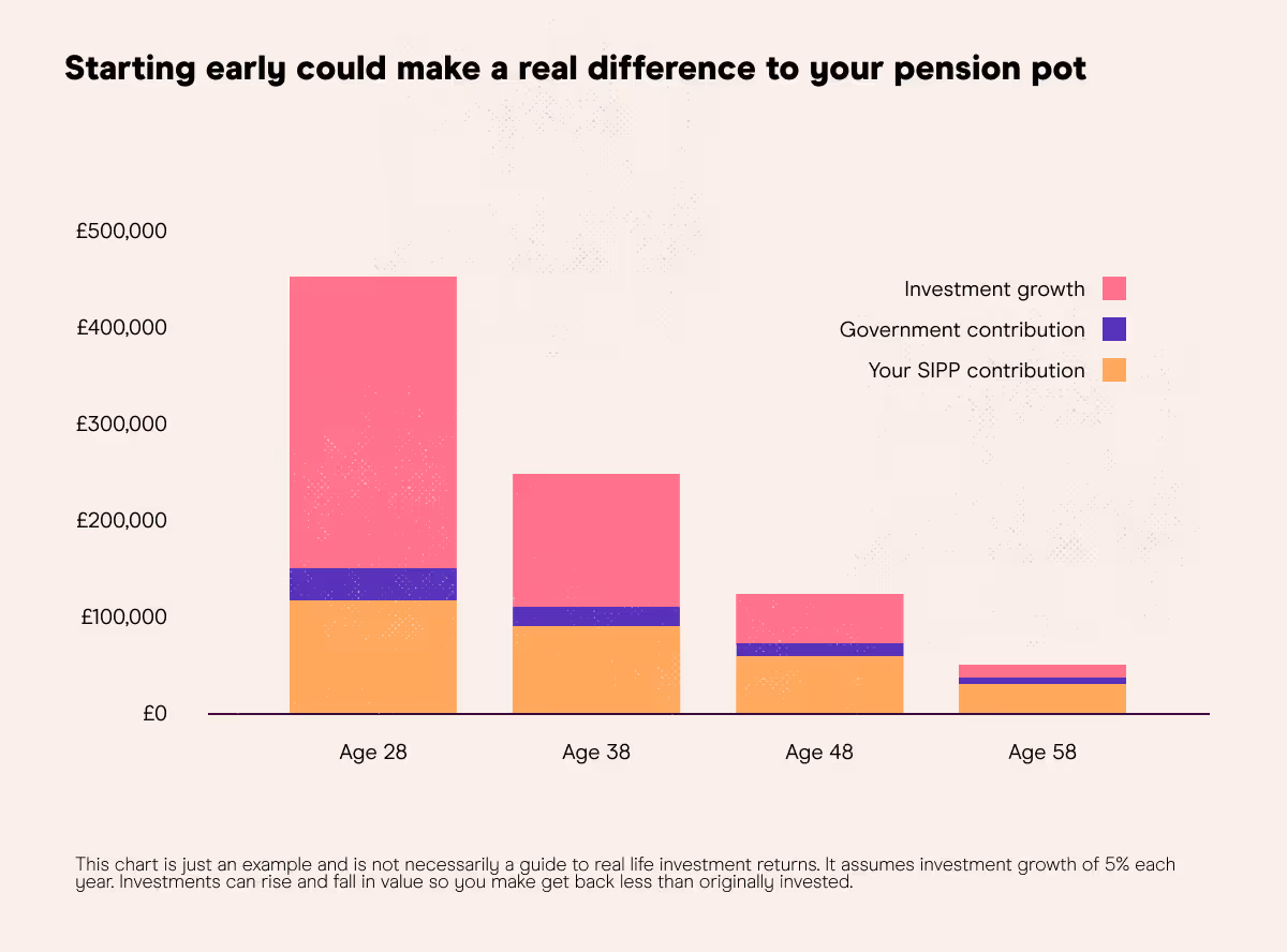 The sooner you start, the sooner your contribution is boosted by tax relief and the more time you give your pension pot to grow.