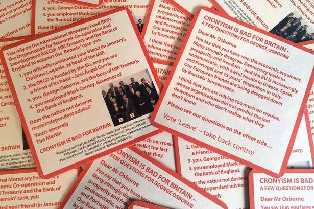 Prior to the Brexit referendum, Martin donated £200,000 to Vote Leave and printed 500,000 booklets, 200,000 beer mats and 5,000 posters in support of the movement.