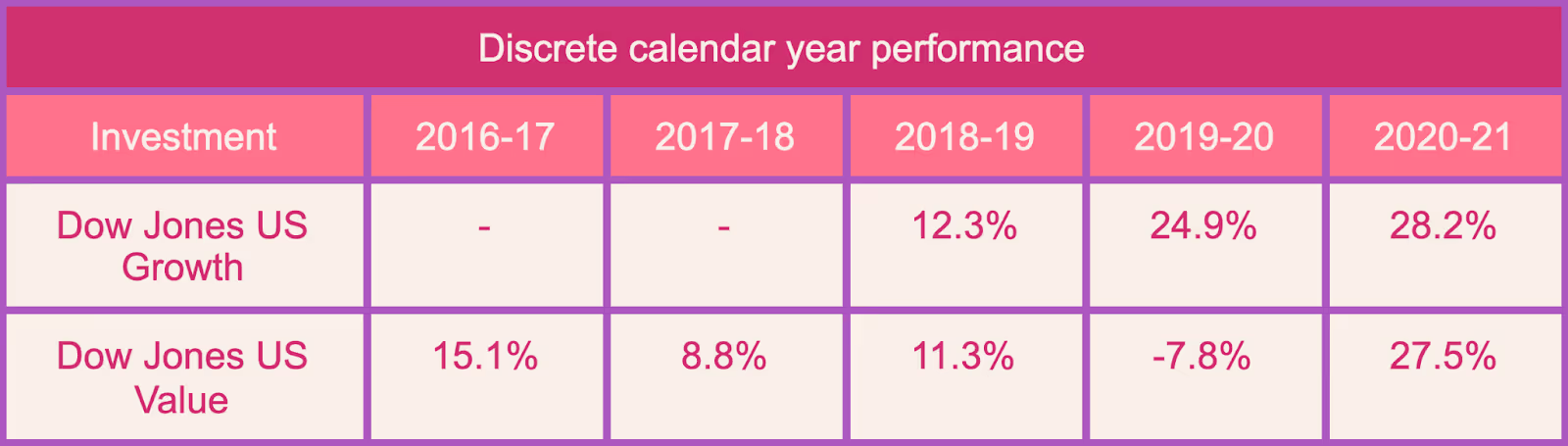 And the market seems to agree. Over the past year the Dow Jones US Growth index is up 28.2%, with its value-oriented cousin up 27.5%.