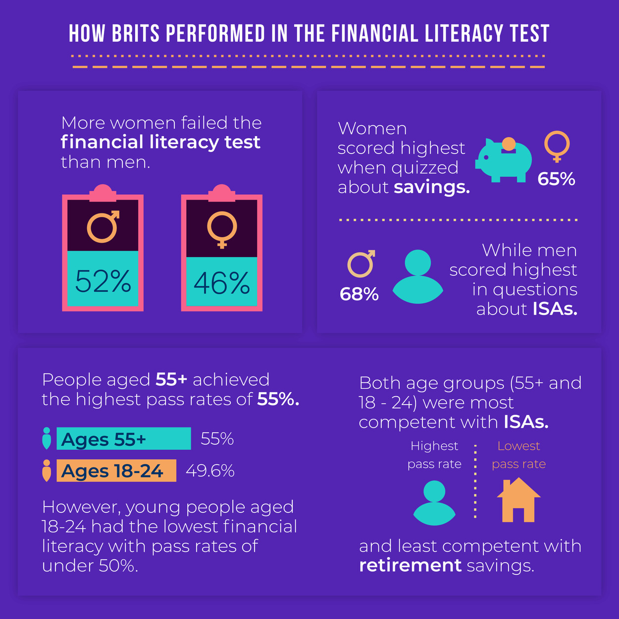 Freetrade’s study discovered that young people had the lowest financial literacy with pass rates under 50%, while people aged 55+ had the highest. There were some differences between male and female respondents too, with 52% of men and 46% of women passing the test. Men scored highest in questions about ISAs, as did young people aged 18-24, and women were most competent with questions about savings. All groups, however, struggled to answer the questions about retirement, including those aged 55+ approaching retirement age.