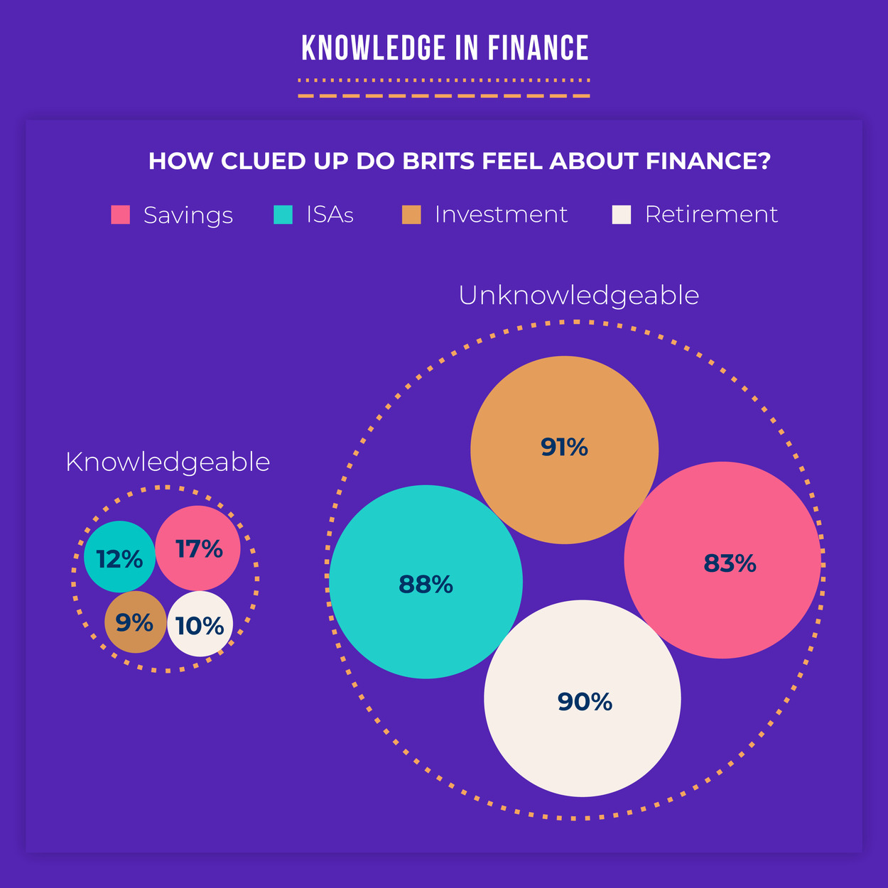Lastly, 34% failed the savings part of the test after being tested on compound interest, APR and direct debits, and 83% of people said they do not feel they have enough knowledge about saving.