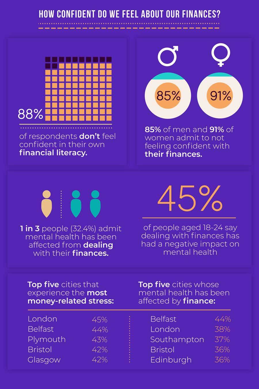 The survey asked how much knowledge the British public felt they had about their own finances, and the results revealed how uncertain people are about their own financial literacy with 88% of the UK claiming to lack confidence. As a result, one in three Brits (32%) admit their mental health has been affected from dealing with their finances.