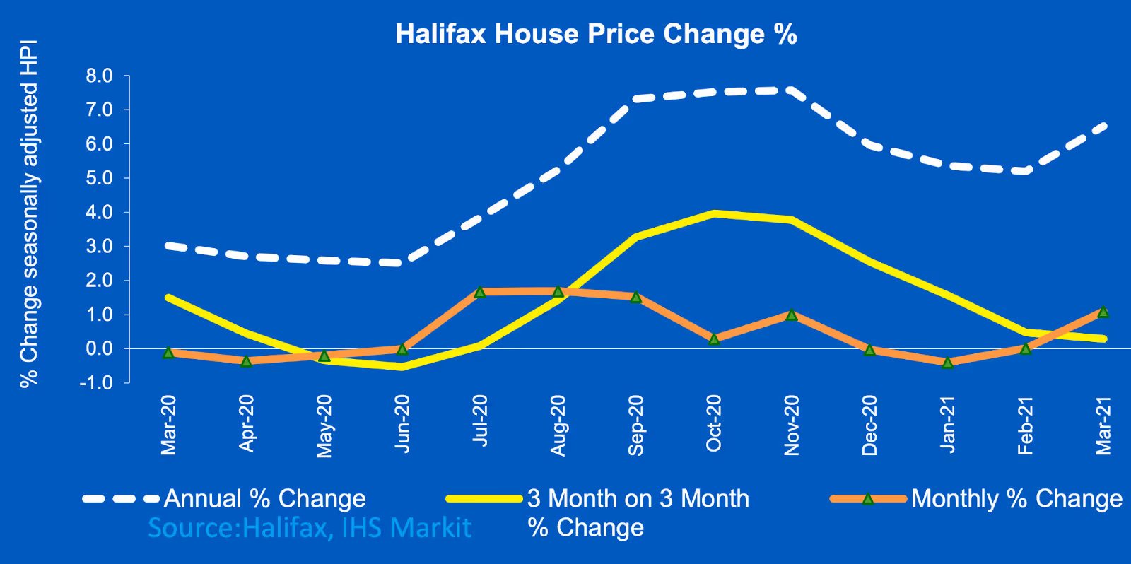 On a monthly basis, house prices in March were 1.1% higher than in February. The rise of almost £3,000 marks the first monthly increase since November 2020.